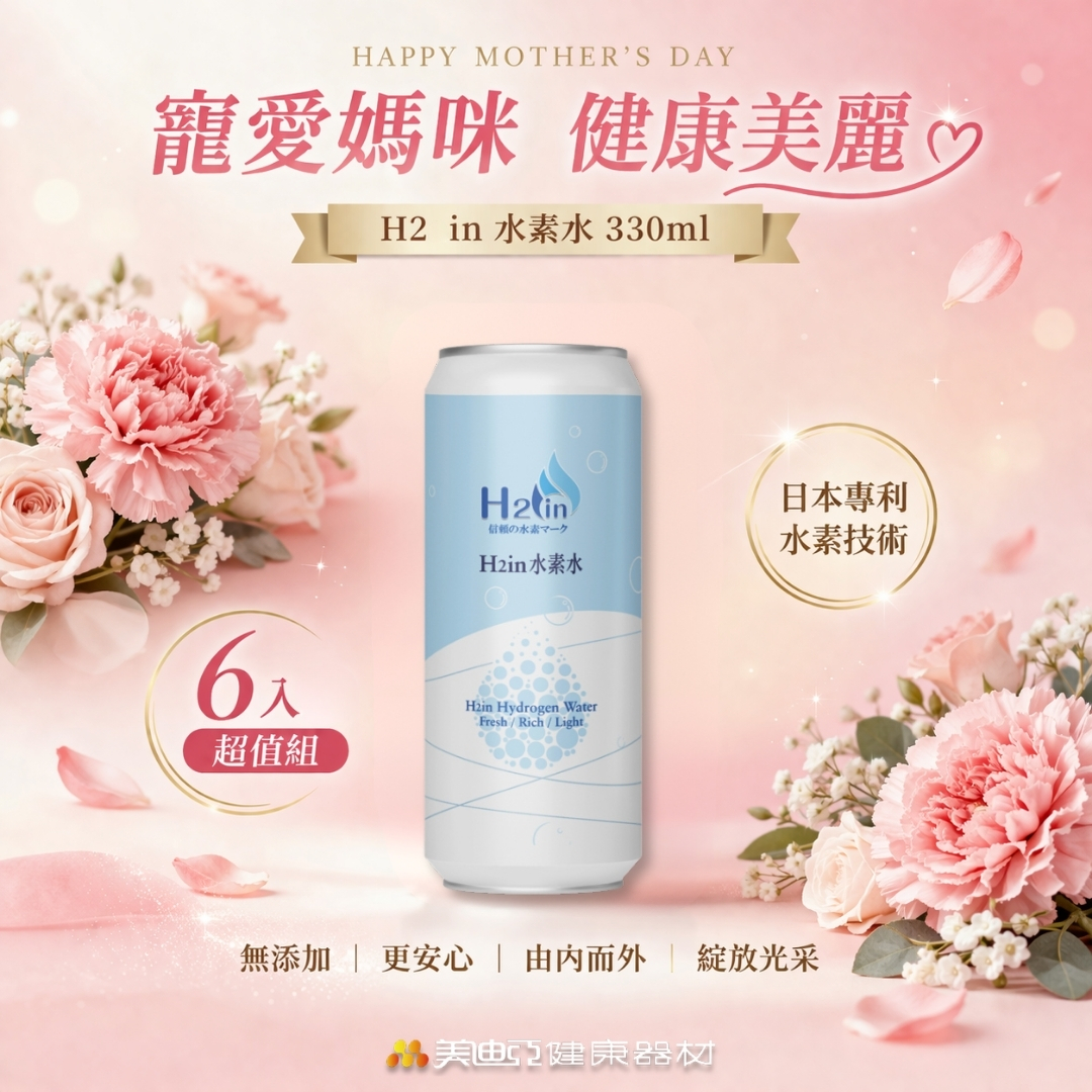 【H2in】高濃度氫近水素水 經SGS檢驗 獲雙認證 日本專利 給家人最好的 純水電解製氫 健康好水【母親節組合6罐裝】
